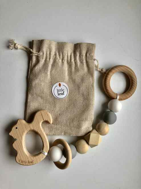 Little Leaf educational pendants were designed and created to develop the child's motor skills and bring relief during a difficult period of teething.The simple shapes and contrasting colors are a positive influence for the development of eye-and-movement coordination of the baby and stimulate visual perception.The combination of wood and silicone allows the child to choose a method of gum massage depending on the needs.Ideally suited for swinging, biting and having fun with the parent.The pendant will be a great complement to the future mums. Perfect as a gift for the baby shower. The product is made of maple wood and safe silicone - free from BPA, phthalates, PVC, latex and lead.