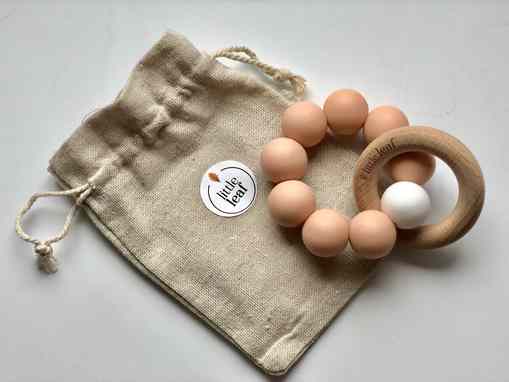Little Leaf Ringball is great teether and toy. The combination of two materials, it massages the sore gums in various ways. Depending on the needs, the child can bite soft silicone beads or hard wood.It also works well as a manipulative toy, perfecting the precision of movements and visual and motor coordination of the toddler. The product is made of beech wood and safe silicone - free from BPA, phthalates, PVC, latex and lead.