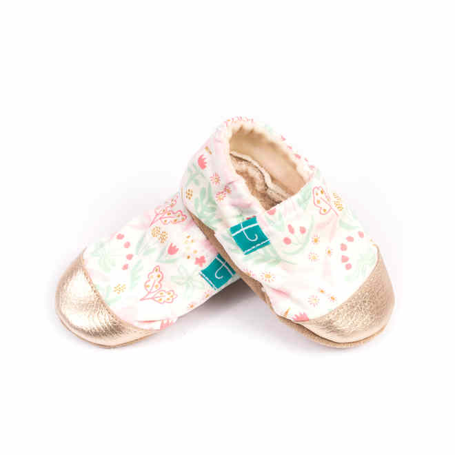 Our most popular cotton fabric colors are made with leather toe. Meeting your expectations, we have created a soft sole shoes with reinforced front. The outside is made of a colorful cotton fabric, covered toe with natural leather, inside padded with organic bamboo velour. The sole inside is soft sherpa, and outside - the micro suede, which does not slip. Feet in our slippers do not sweat. The use of natural fabrics gives the feeling of comfort and coyness, while the soft sole protects the baby's feet from artificial flooring. Our slippers also protect feet from cold and make socks do not fall off. TITOTs are perfect for children of all ages. Our standard size is from 0 months to about 5 years old. Bigger slippers can be made to individual order. These slippers are perfect for crawling, walking and running children, for nursery or kindergarten as well as home and backyard. The skin on the front prevents the material from rubbing and your babies can enjoy their favorite slippers even longer! The soft, enclosed elastic around the ankle makes our slippers to not fall off, and if they are loose, the elastic can be easily laced or sewn to better fit the baby's ankle. With time, as the feet grow put elastic back to the original embroidery. Soft sole shoes are recommended by pediatricians and Orthopedists around the world as ideal protection against artificial floor when walking barefoot. Slippers like ours fit in the guidelines for children to crawl and take the first steps, and later in the development of stumps. We recommend that you choose at least 1 centimeter of the actual footprint. Children's feet are growing at different rates. It is recommended to measure the feet every 2-3 months and to get the right size of shoes at that time. Optimally, shoes as well as the slippers should be changed for bigger ones every 3-4 months to allow the feet to develop properly.